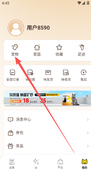 1、点击我的页面,选择用户名左侧的宠物功能。