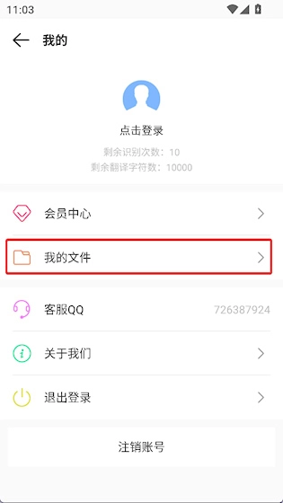 2、点击“我的文件”