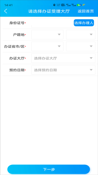 4、选项输入相关个人信息,点击下一步,申请预约办理相关的业务即可。