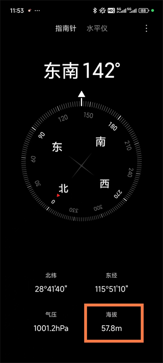 1、快速显示当前地理位置、经纬度、海拔和气压。