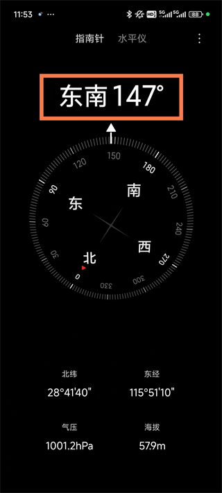 2、快速显示箭头方向,轻松读取东南西北,360度旋转不迷路。