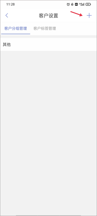 2、这里显示的是客户分组管理列表,点击右上角的“+”。