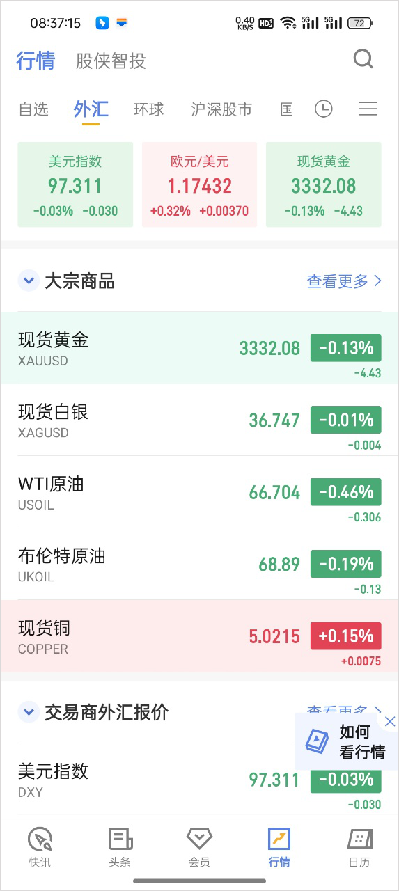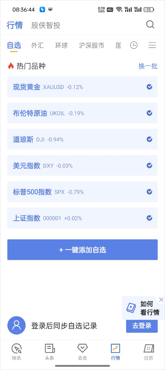 分类大宗商品、外汇、A股与期货等,加入自选快速关注行情数据。