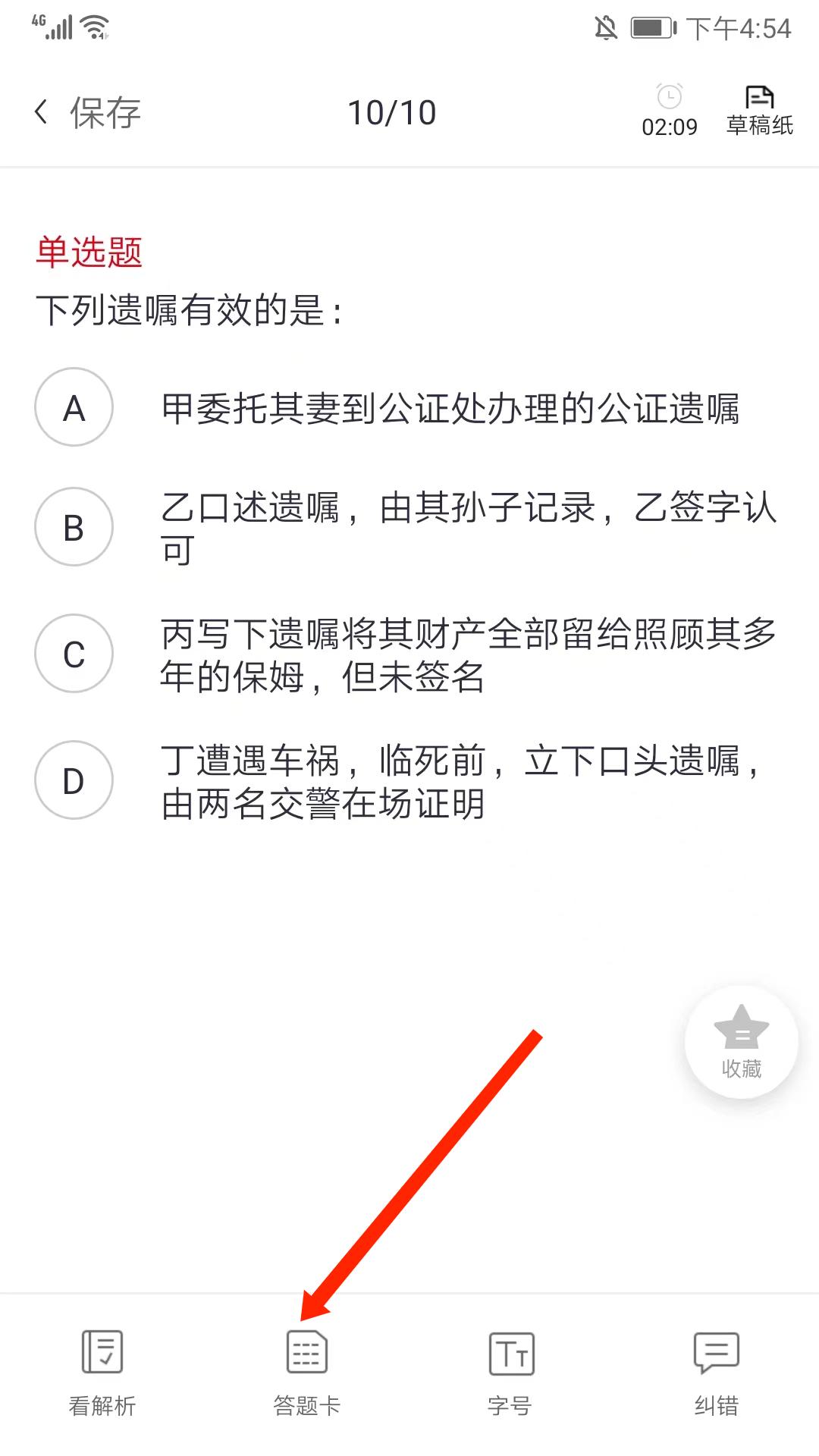 1、打开中公题库app,在答题界面选择“答题卡”选项,