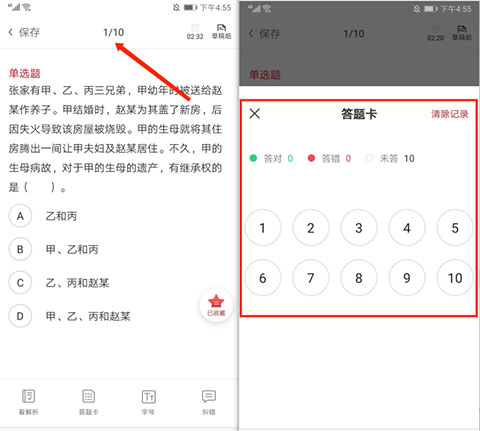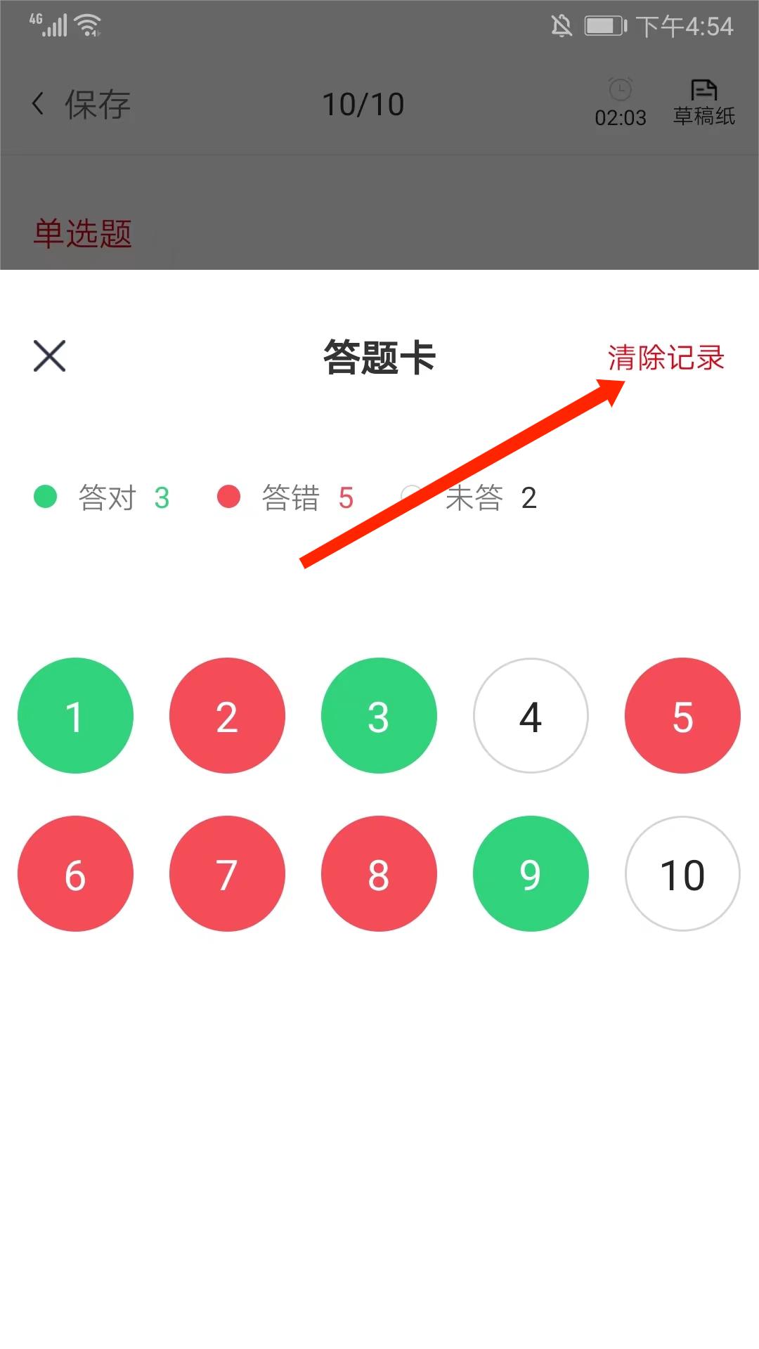 4、然后答题界面重新回到第一题,答题卡界面显示空白,即可重新刷题。