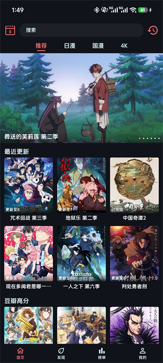 打开漫闪App直接浏览「推荐、最近更新、豆瓣高分」板块,快速get热门新番与经典佳作,都在首页首推。