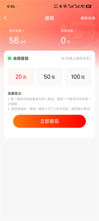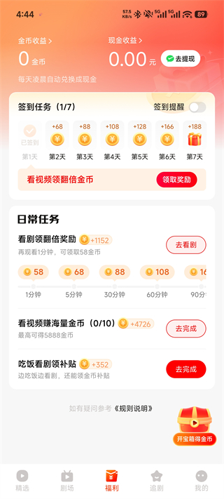 金币奖励:通过签到和任务赚取金币,轻松兑换现金。