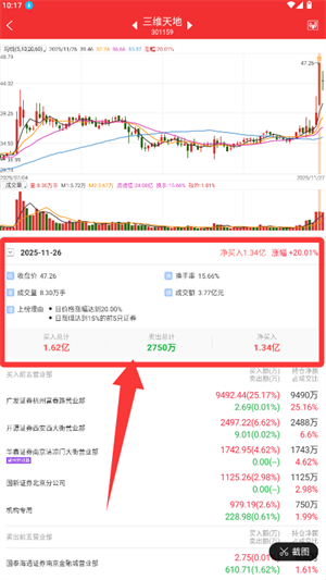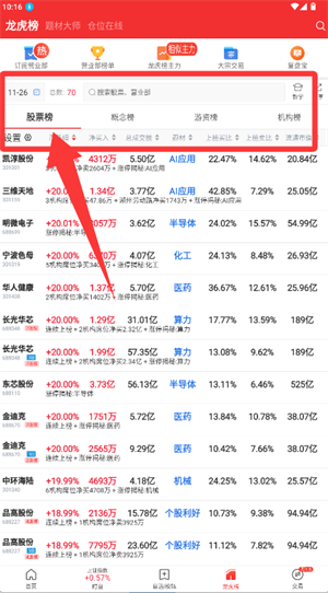 2、在主界面股票榜单中选取目标个股,点击进入详情页面。