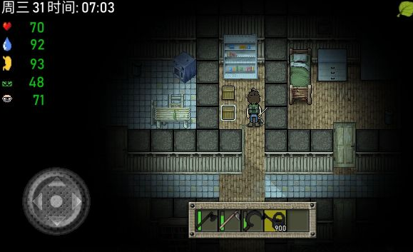 2. 水源:开局时可找到一瓶洁净饮用水(底色为蓝色),污染水为黄绿色,瓶子可重复利用。