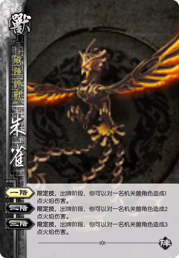 三阶:限定技,出牌阶段,你可以对一名机关兽角色造成3点火焰伤害。