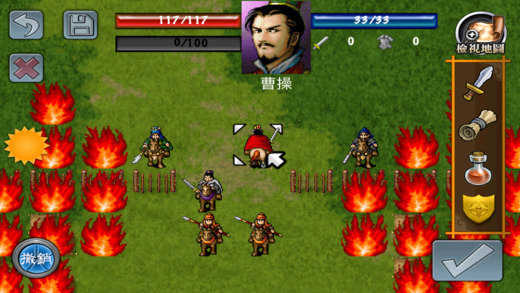 孙坚自己会进行小补给。但注意不要在他的攻击范围里留下可以一击即死的敌兵,否则孙坚就会奋勇杀敌而忘记自身安危了。保住孙坚,战斗结束后他会赠送一把古锭刀给你。另外尽量派你的人包围华雄,不要让关羽接触他,来个“温酒斩华雄”,你的大量经验值就泡汤了。