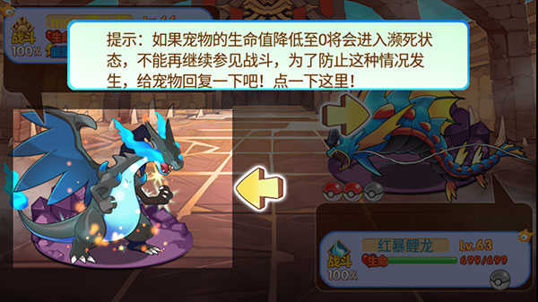 3、如果宠物的生命值降低至0将会进入濒死状态,不能再继续参见战斗,为了防止这种情况发生,给宠物回复一下。