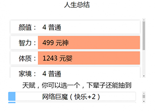 3、你的人生会呈现不同的面貌,获得资源,选择合适的天赋,调整各种属性。