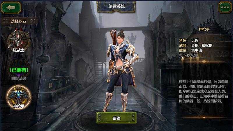 职业特点:这是一个远程输出职业,使用步枪和左轮枪为武器。在游戏中能量值是集中值,每五秒进行恢复。