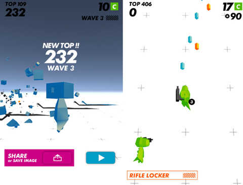 在玩家的游戏过程当中,我们会偶尔遇到一些绿色或者蓝色、红色的小动物,打碎它们就能够获得相对应的特殊奖励,其中绿色会掉落货币C(coin 也就是硬币);而蓝色则会掉落一些补强道具(比如分裂武器、可追踪的导弹等);当然对于红色的小动物,我们就需要特别注意了,因为它们往往不会按照一个方向走,而是会有不同的走位,稍不注意我们就会撞上他们。