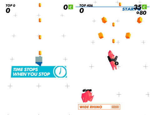 游戏的设定非常简单,属于典型的俯视角弹幕游戏,游戏中玩家将会面对来自四面八方的各路生物,而我们需要做的就是控制主角用自带的武器系统将他们打败,或干脆更加简单,通过走位甩开他们便是。不过游戏有一个很有趣的设定,那就是只有在玩家操作的时候,你的角色、敌人、你的和敌人的子弹才会开始动。因此在循环往复的与敌人的接触当中,时间并不是最重要,对于节奏的掌控才是王道。
