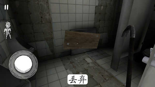 当这个小白点停留在可以拿起的道具上时屏幕右侧会出现一个白手,点击后就可以拿起来了,当拿起物品后屏幕下方会出现丢弃的图标,