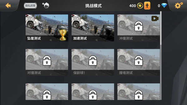5、进入车祸模拟挑战,每关的要求不同,但车祸越惨分越高;