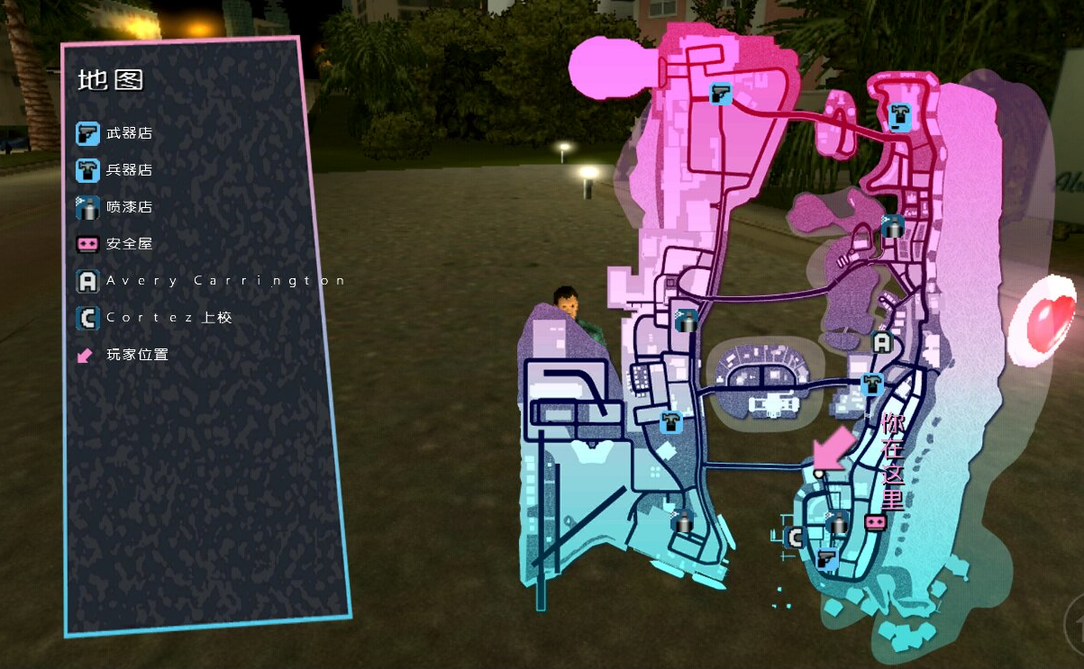 以现在的眼光来看的话,其实罪恶都市的地图很小。就算和当时没多久之后就发售的圣安地列斯相比,罪恶都市的地图也是小了不少,更何况如果不做主线任务开启后续剧情的话,玩家是只能在整个地图的一东侧区域活动的,西侧区域除非使用特殊手段要不然是过不去的。
