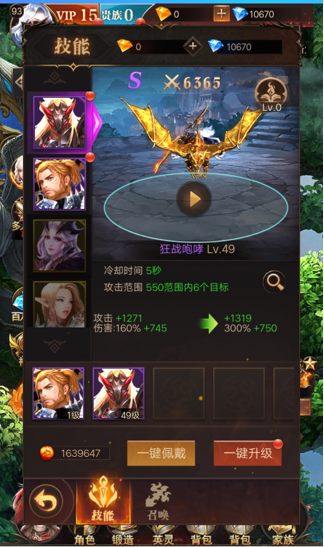强化:强化就是游戏中最常见的功能,且《神龙猎手》中的强化有“强化大师”的特殊加成,当身上的所有装备达到某一阶时可以获得额外的属性加成。强化消耗黄金和强化石,通过挂机副本、熔炼装备以及日常任务都可以获得大量强化石和黄金。