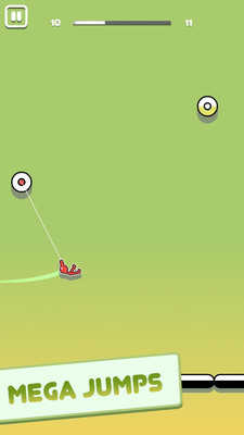 玩家在游戏中通过点击屏幕来释放绳索让火柴人进行悬挂荡悠,选择合适的时机松开火柴人就会旋转跳跃。