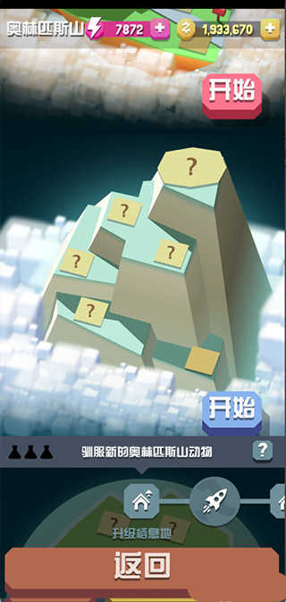 疯狂动物园有很多地图,每一个地图又分为五个关卡,每解锁一个关卡就会多一种动物,每个地图一共有七种动物。玩家有两个动物园,在屏幕左边的图标中有个火箭的标志,点进去玩家可以解锁侏罗纪公园,奥林匹斯山,还有长城等地图,地图风格还有动物都截然一新。