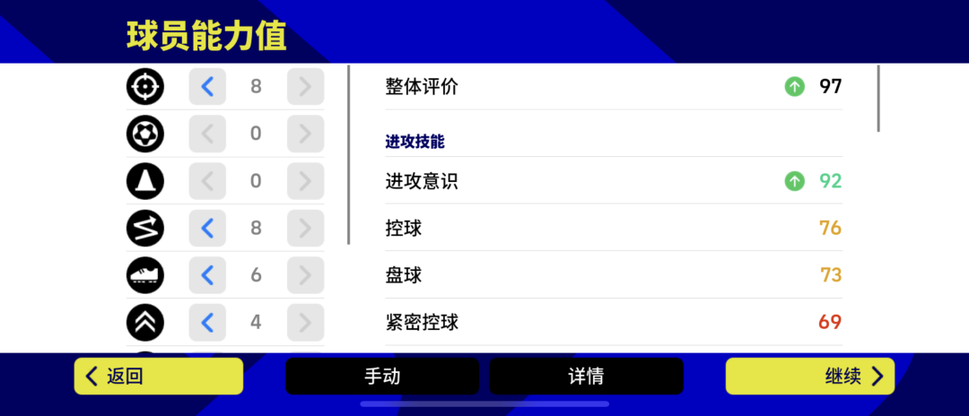 全能型中场:全部点数都推荐涉及,但需要结合球员特点进行分配。