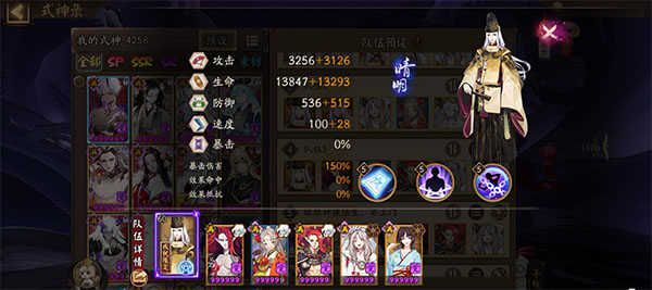 2、第一套阵容使用晴明+蝉冰雪女+酒吞童子+丑时之女+玉藻前+铁鼠。