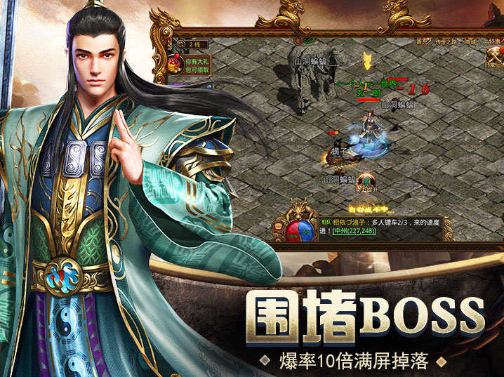激斗BOSS 神装爆屏--- 百倍爆率看得见,神装爆屏满地捡!游戏内多种BOSS玩法,跟兄弟们一起打boss抢超级神装,体验超高爆率!更有跨服boss等你挑战,扬名立万,就在此刻!