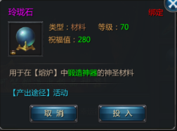 1.打开熔炉,将锻造材料放入材料框中,锻造极品神器