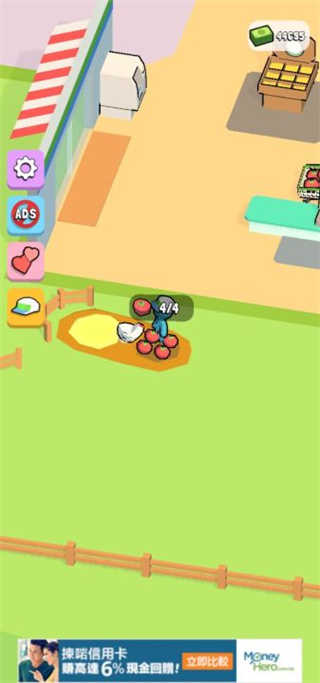 1、首先我们进入我的连锁超市游戏,第一步就是先解锁一些货架,开始售卖产品;