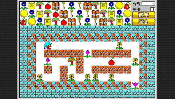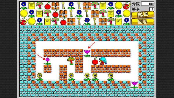 2、来到第一关,游戏的玩法很简单,在这里我们要做的就是控制图中的小人去吃掉关卡内的蘑菇