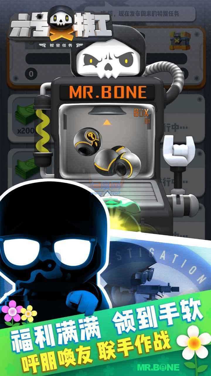 是一款好玩的充满魔性的休闲射击手游,该游戏中是有不少有意思的玩法,玩家在这里是扮演一名优秀的特工,然后进行射击。畅快射击只需轻轻一点,策略搭配全在一念之间,全新搞怪动作射击手游劲爆来袭。简单操作,痛快射击,次时代的场景和战斗体验,超丰富武器和角色收集,一起来消灭脏丝守卫家园吧。正版授权,原创团队合力打造,面临特工生涯的全新挑战,看MR.BONE如何耍帅全场。