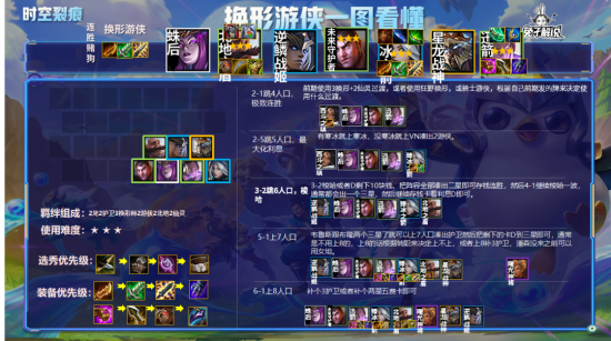 大家可以看到《金铲铲之战》这款游戏有时空裂痕赛季、英雄之黎明赛季、狂暴模式、双人玩法、装备狂欢这几种游戏玩法,其中时间裂痕和英雄之黎明是有排位系统的。下面我来为大家介绍一下时空裂痕玩法的装备、羁绊与阵容。