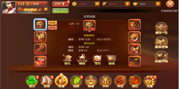 佩戴主公装备可以提高战斗力,强化和精炼亦可提高,需要金精石和强化石,进强化,精炼道具可在武库购买及充值活动获得!