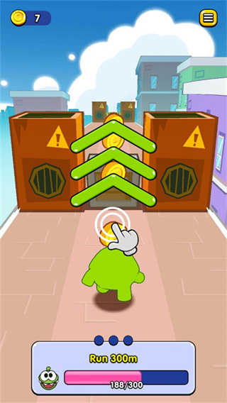 1、进入奥姆跑酷2游戏之后,在跑酷过程中遇到前方障碍物时,向左或向右滑动即可更换赛道;