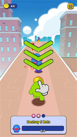 5、游戏中还会出现大量的机器人,下滑或左右滑动即可将其击败;
