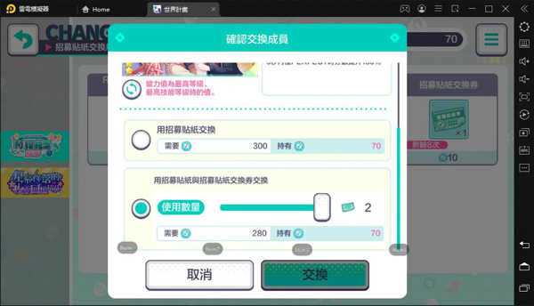 300张贴纸→交换1次「卡池主推的★4角色」,用来兑换当期限定角色。