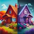 1、从两幅类似但又不太一样的图像中寻找不符合逻辑的部分,完成你的挑战。