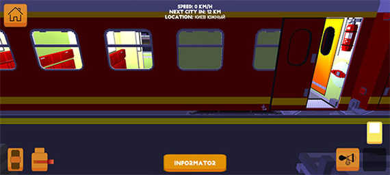5、右下角相机可以切换不同视角查看火车的各个部位,到站可以点击相机上方的黄色按钮打开车门,开始行动吧。
