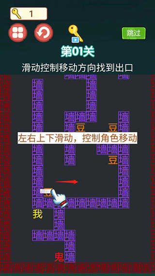 1、下载打开游戏后,游戏玩法和我要吃金豆鬼模式的玩法相似,左右上下滑动,就可以控制角色移动;