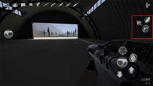 1、想要拿枪就必须先找到一把枪,找到枪后需要将准心放到枪上,这时屏幕左边会出现一个手指按钮,按住手指按钮即可拾取;