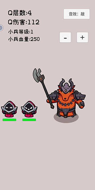 3、同时点击下方的加减键即可更改小兵等级,小兵等级越高血量越高,但是同样叠加的层数也会变高