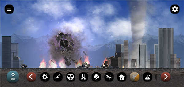 1、打开失控城市模拟器后,在下方可以对城市选择行动,比如放烟花或者放炸弹,再次点击同一个行动就可以更改威力大小或者关闭了。