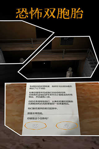 恐怖双胞胎中文版是一款可以为小伙伴们带来一种惊悚体验的恐怖冒险刺激类游戏哦,在这款游戏中可是采用了第一视角的玩法哦,保证是可以让我们快速沉醉其中的哦,来看看在你的操作下我们能否顺利逃脱吧。
