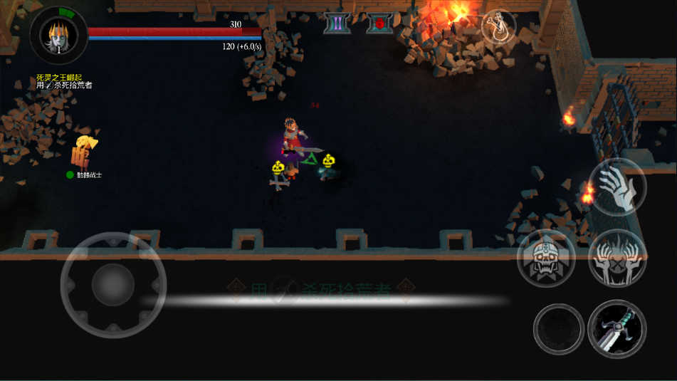 3、游戏操作其实很简单,左侧用来移动,右侧则是攻击功能
