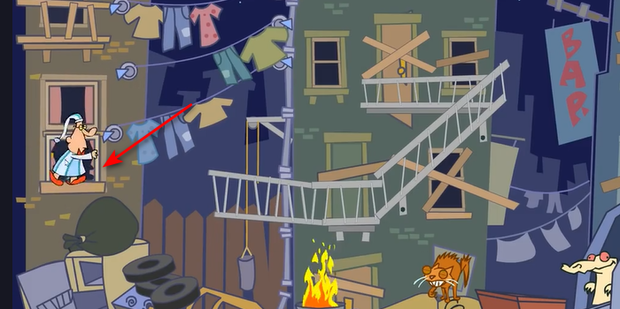 6、花盆,花盆会掉下来把狗砸晕,这里如果点早了,狗会醒过来