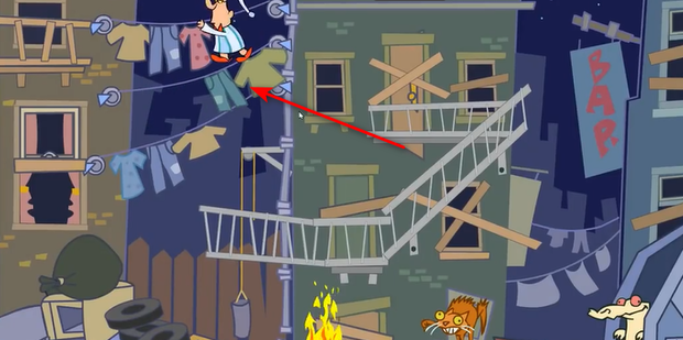 1、点击晾衣绳让衣服滑过来梦游先生好经过。