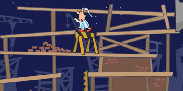 5、用路障连接脚手架,让梦游先生通过。