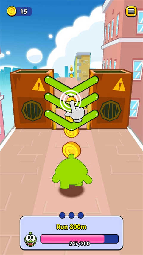 1、下载进入奥姆跑酷2正版游戏,在跑酷过程中遇到前方障碍物时,向左或向右滑动即可更换赛道;